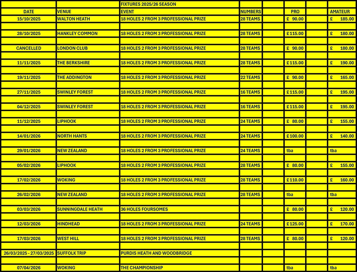 The south east's premier winter series of Pro-Am's, played on some of the countries finest golf courses