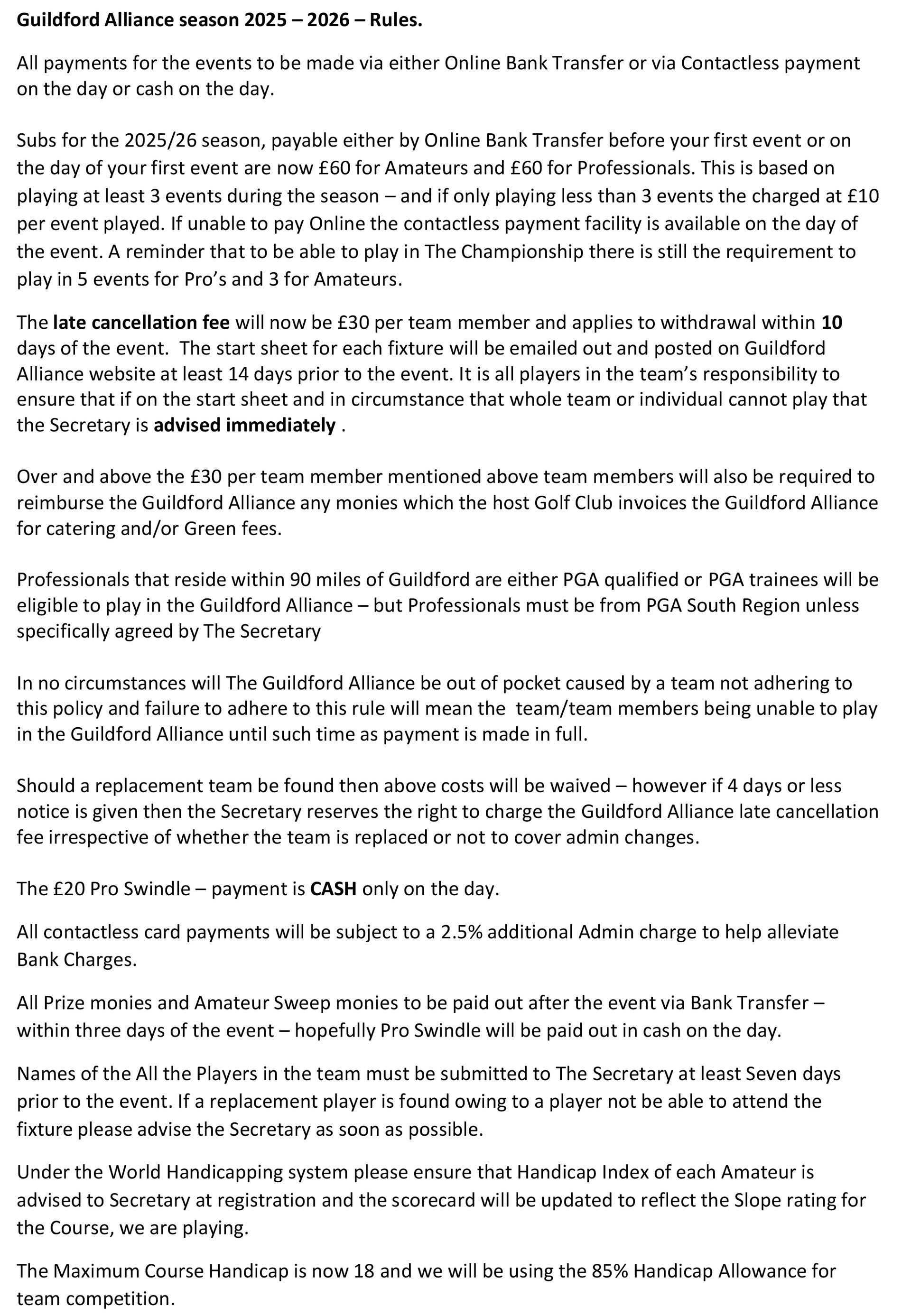 Membership is open to amateur golfers who have a CDH number and a maximum playing Handicap of 15 – Amateurs can play off higher handicaps but for all Guildford Alliance events the playing Max handicap is 15 – Amateur golfers must reside within 100 miles of Guildford.
