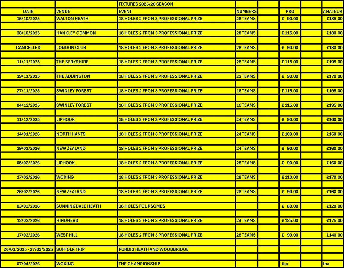 The south east's premier winter series of Pro-Am's, played on some of the countries finest golf courses