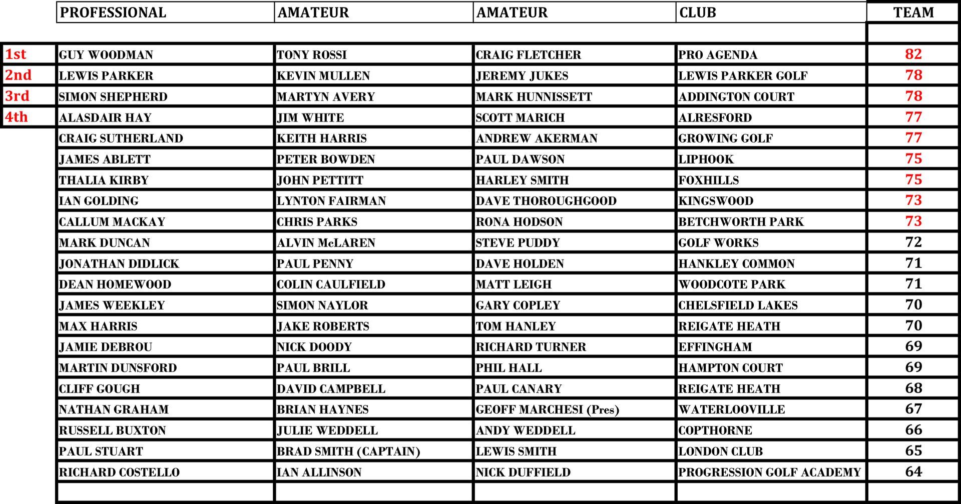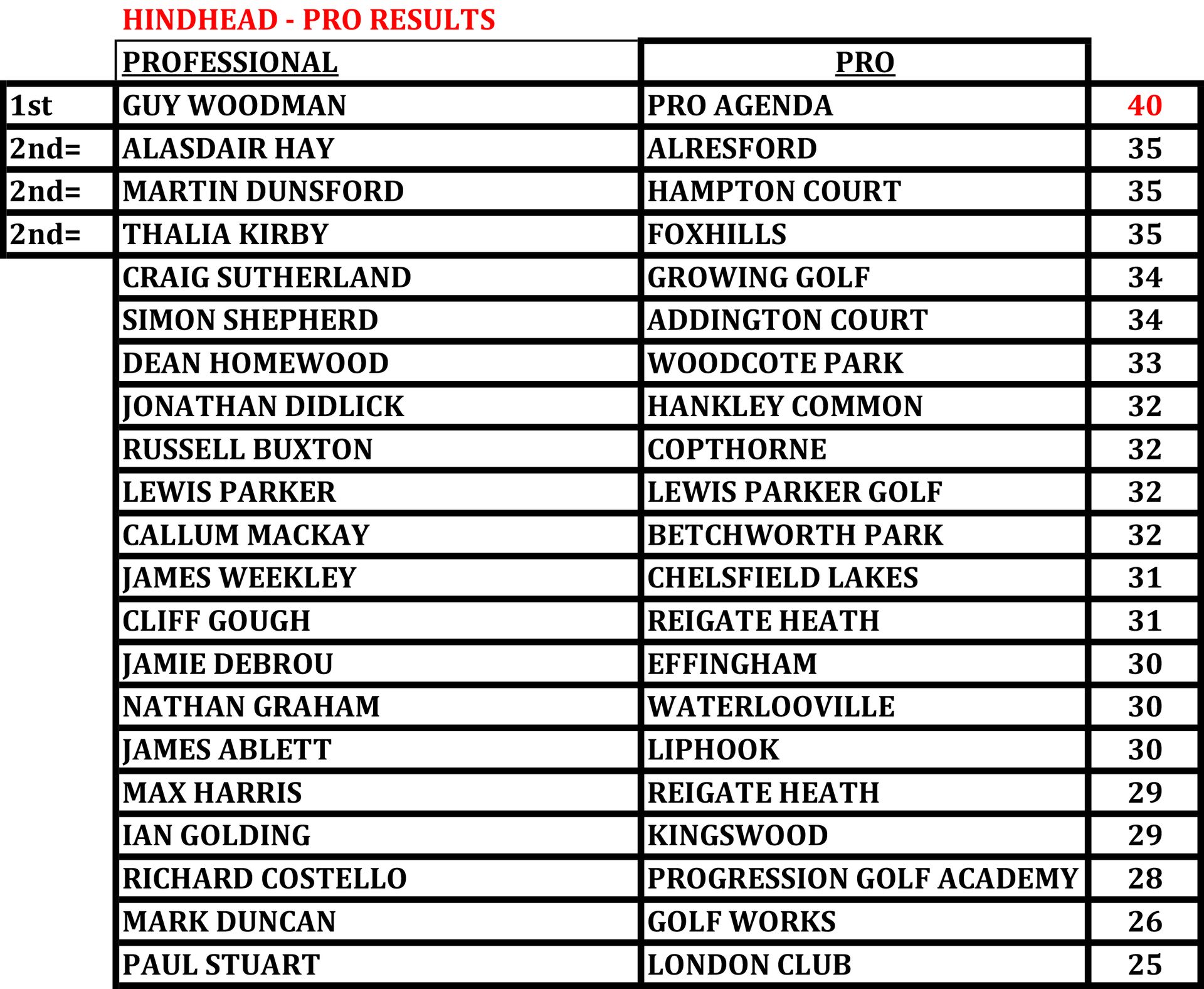Professional Individual Stableford Competition -