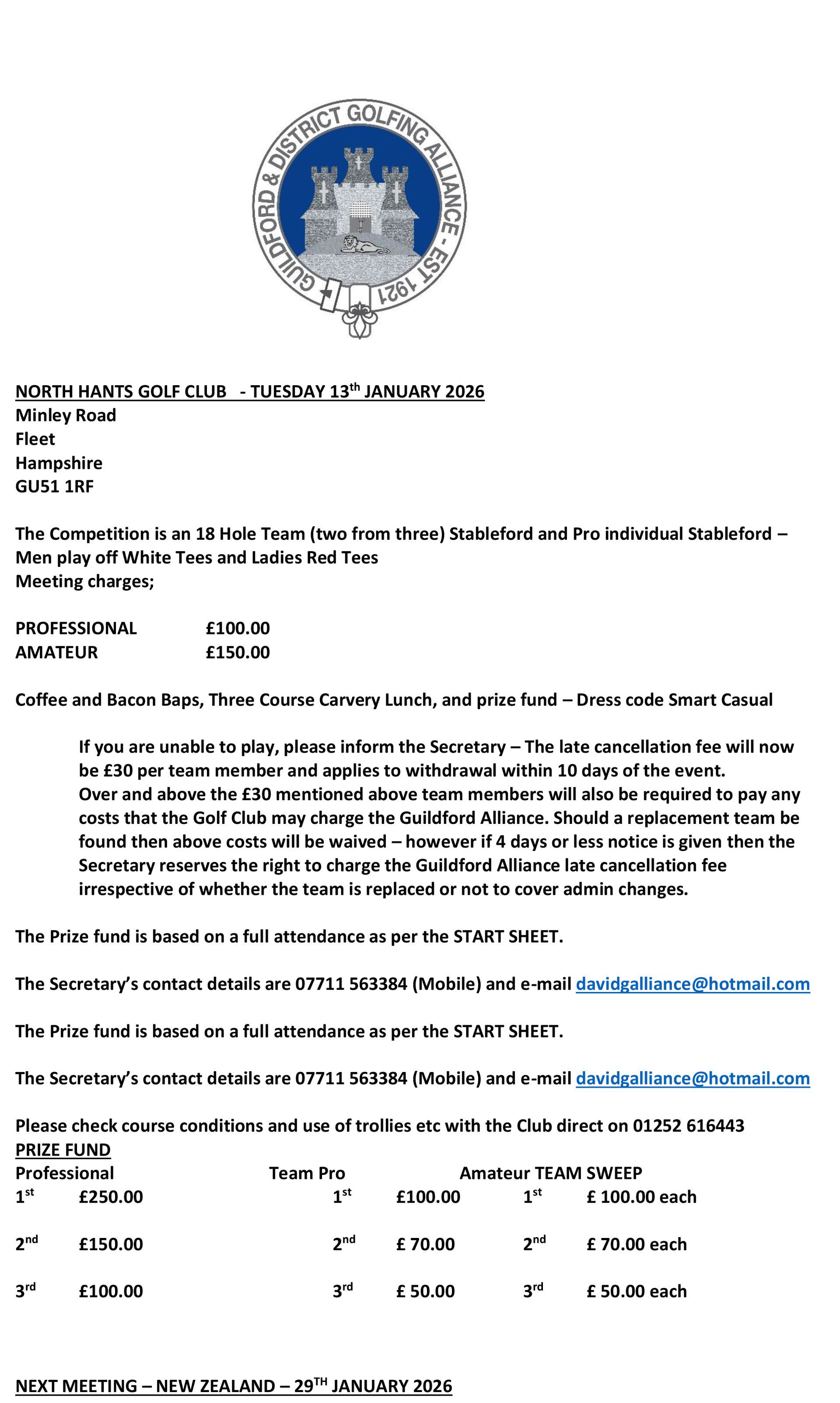 Tuesday 13th January 2026 (changed from 14th January 2026)