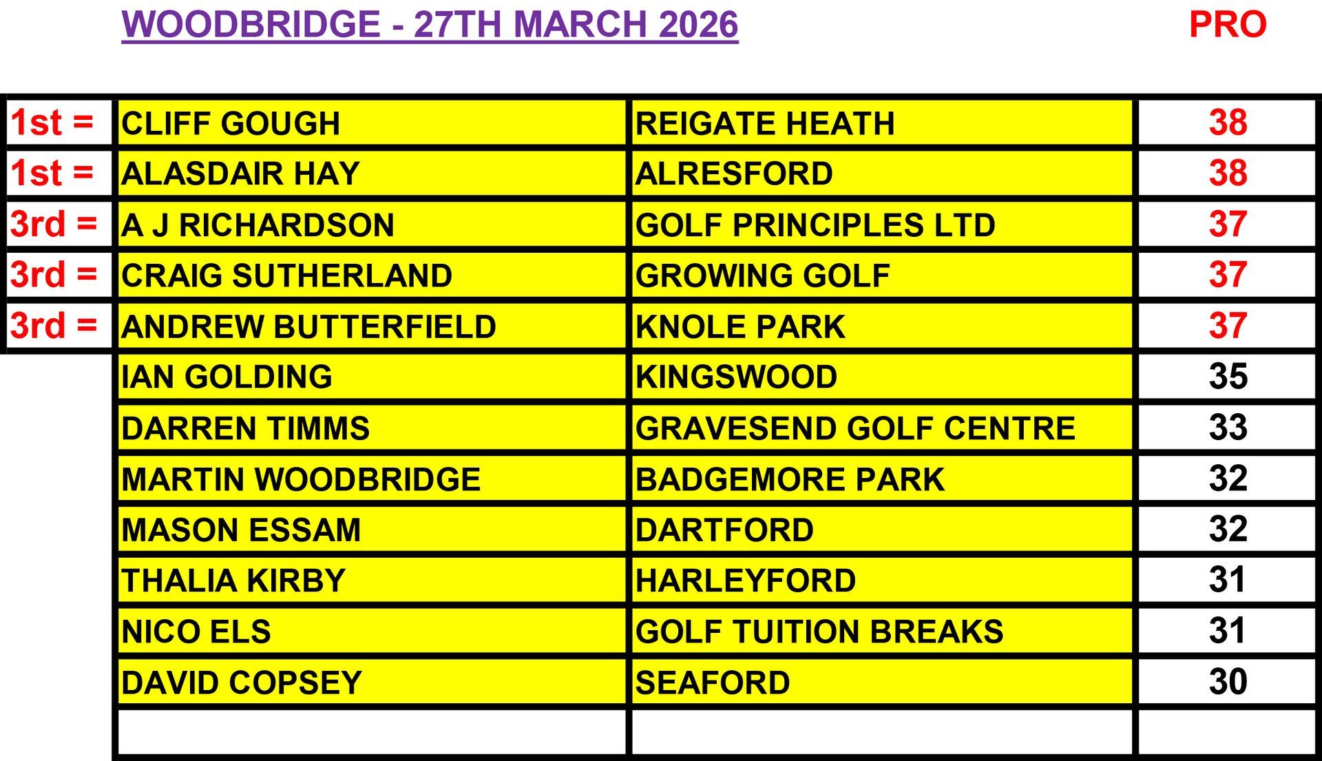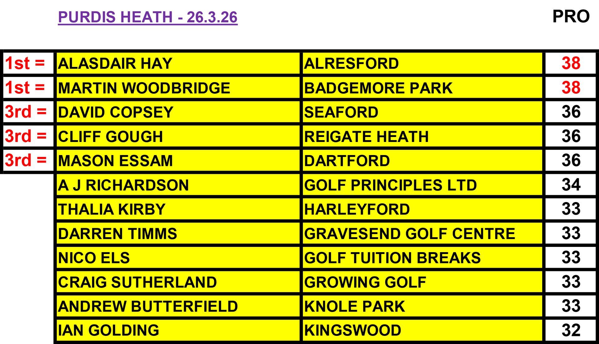 Professional Individual Stableford Competition - Daily Prize Fund and Overall Prize Fund