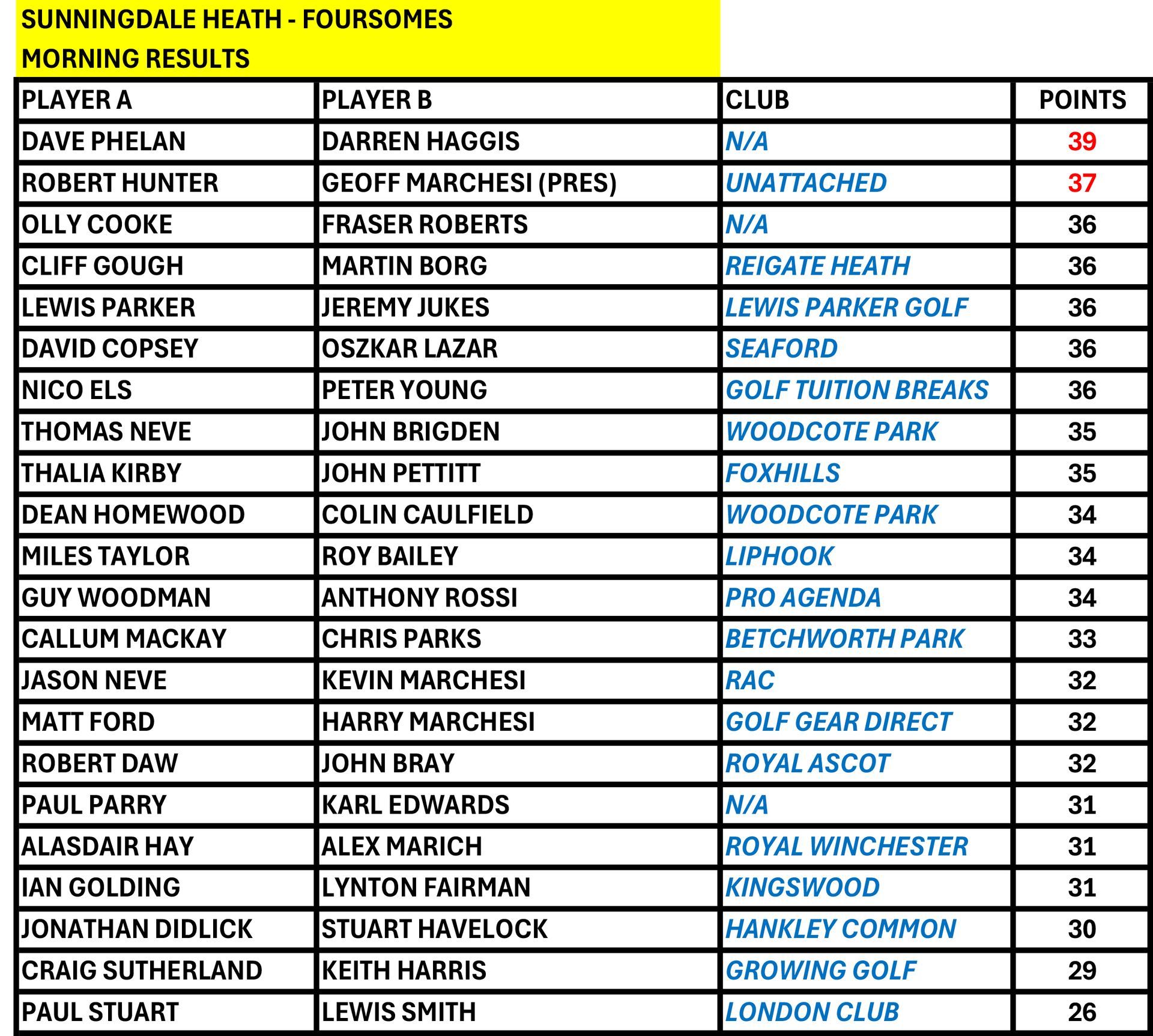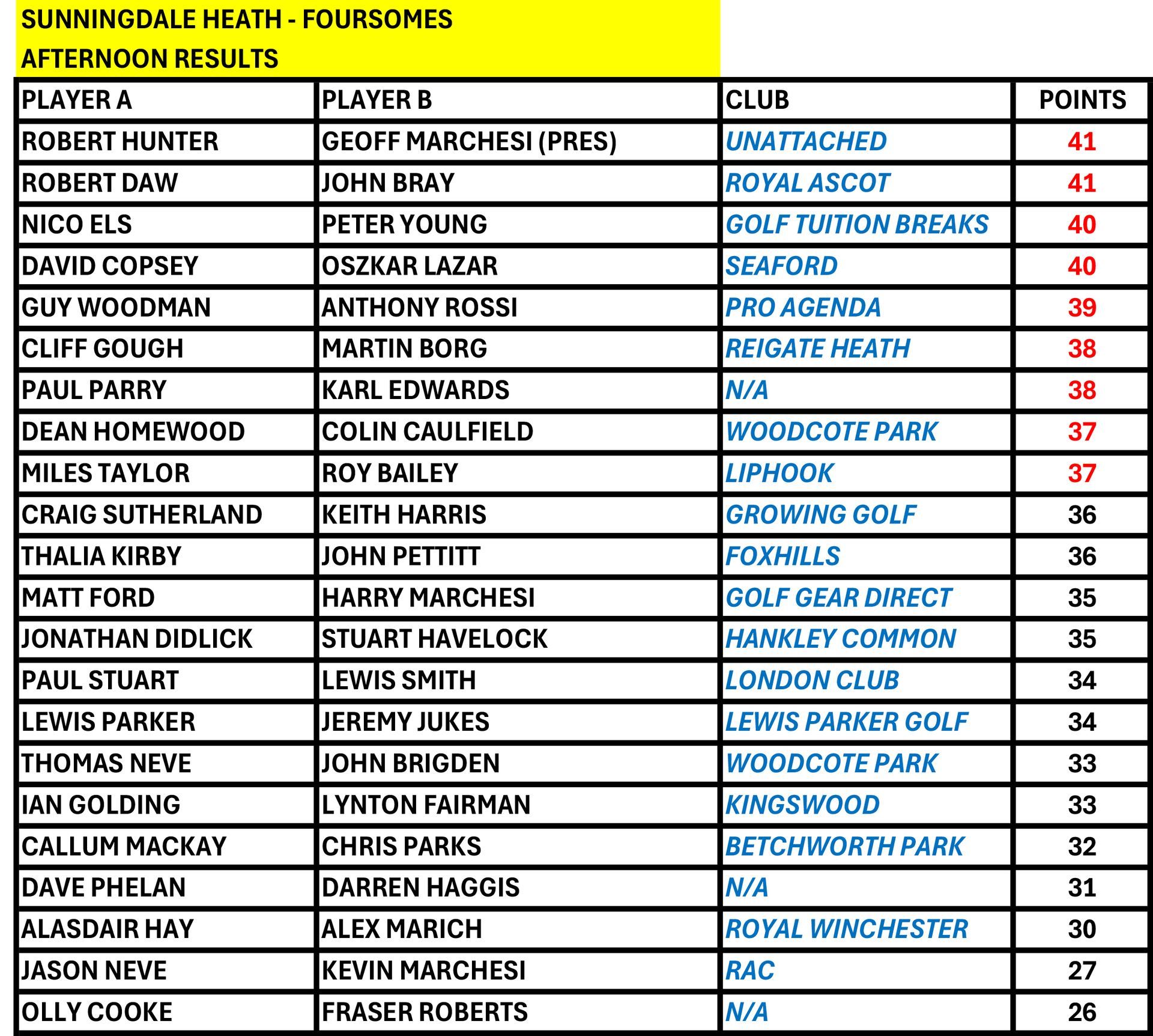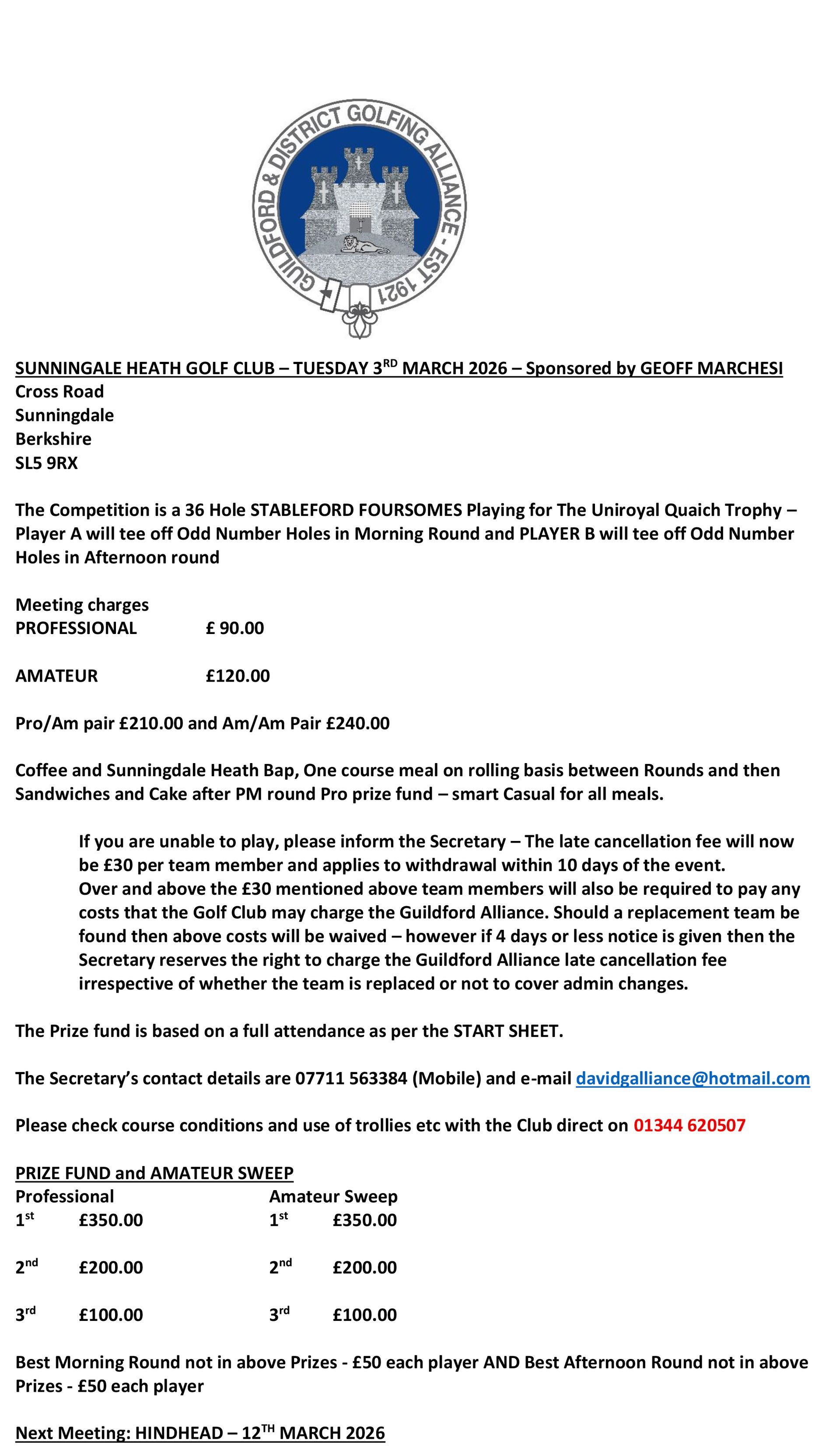 SUNNINGDALE HEATH - FOURSOMES